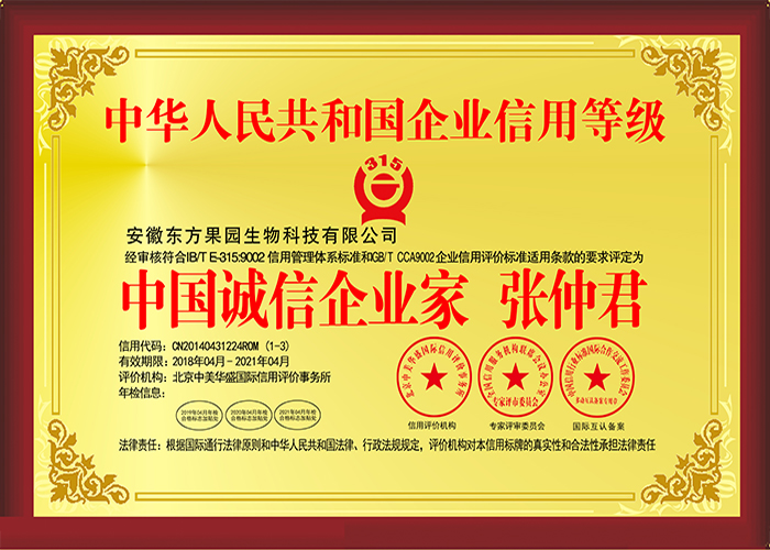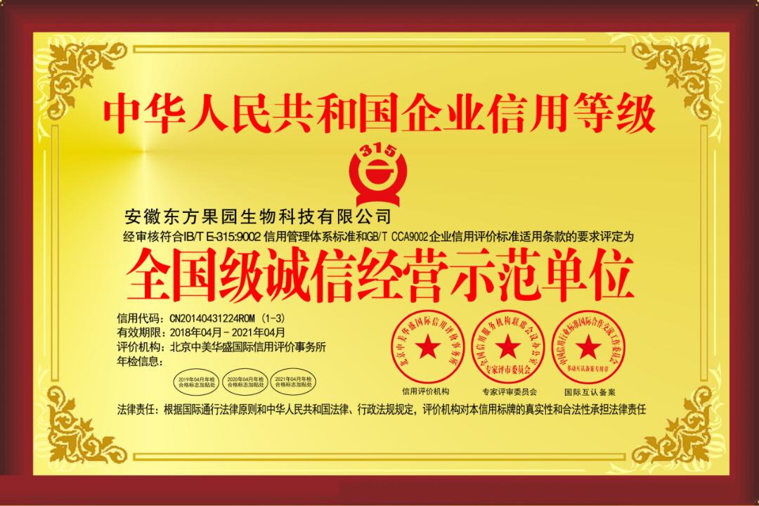企業(yè)信用等級全國級誠信經(jīng)營示范單位