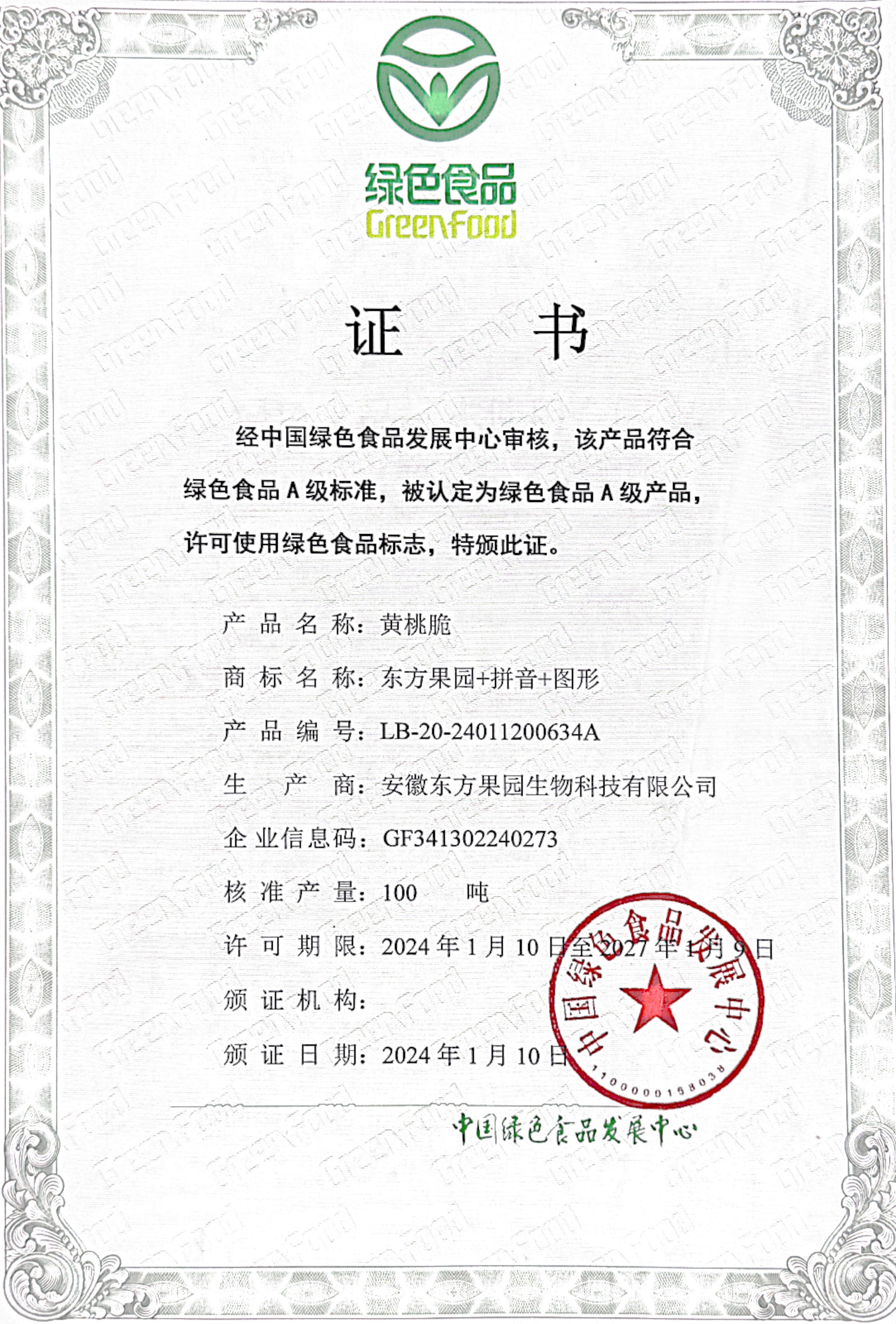 綠色食品認(rèn)證 黃桃脆