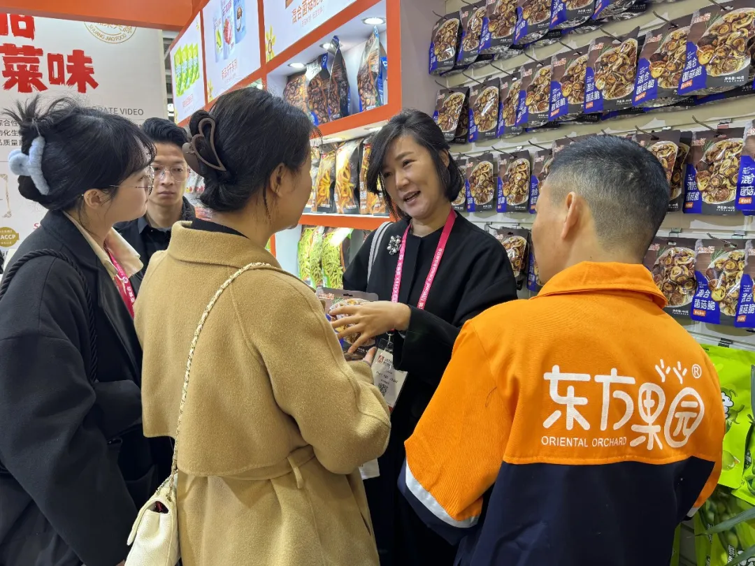 東方果園高度重視企業(yè)科技創(chuàng)新,堅(jiān)持以創(chuàng)新驅(qū)動(dòng)數(shù)智化發(fā)展,與中國農(nóng)業(yè)科學(xué)院、江南大學(xué)、合肥工業(yè)大學(xué)、南京林業(yè)大學(xué)、安徽農(nóng)業(yè)大學(xué)等高等院校開展深度產(chǎn)學(xué)研合作,此次展會(huì)東方果園帶來創(chuàng)新工藝鮮制豌豆脆、混合菌菇脆等新產(chǎn)品,吸引各國參展觀眾駐足品鑒和咨詢交流。