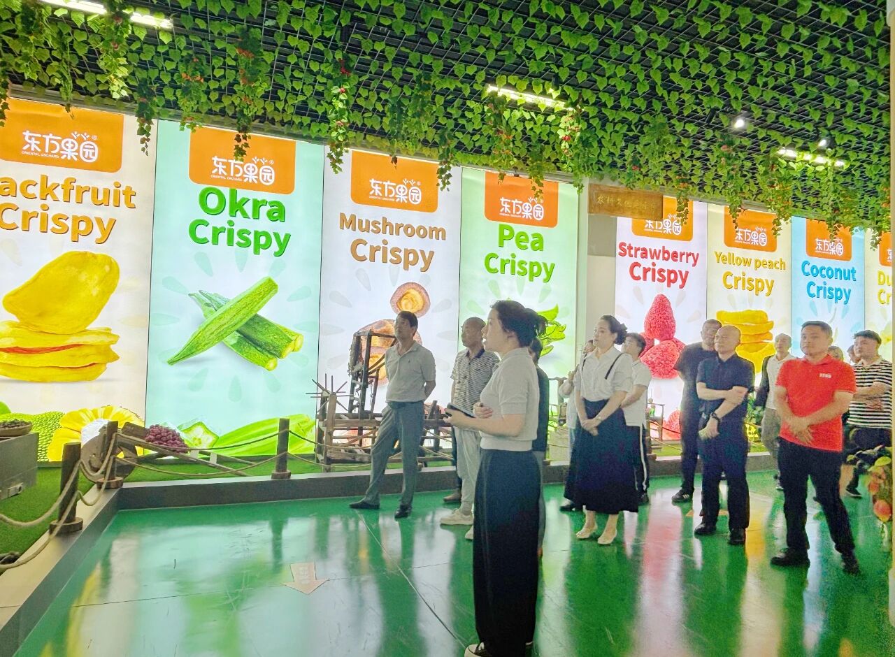 市場監(jiān)督管理局領導及志愿者們首先參觀了公司食品安全研學基地。這里不僅是知識傳播的平臺,更體現了東方果園對食品安全教育的持續(xù)投入。通過生動的展示與專業(yè)講解,大家對公司食品安全科普工作及果蔬脆生產工藝給予了認可。在食安基地,志愿者現場品嘗了多款果蔬脆產品,并從專業(yè)角度提出了寶貴建議。