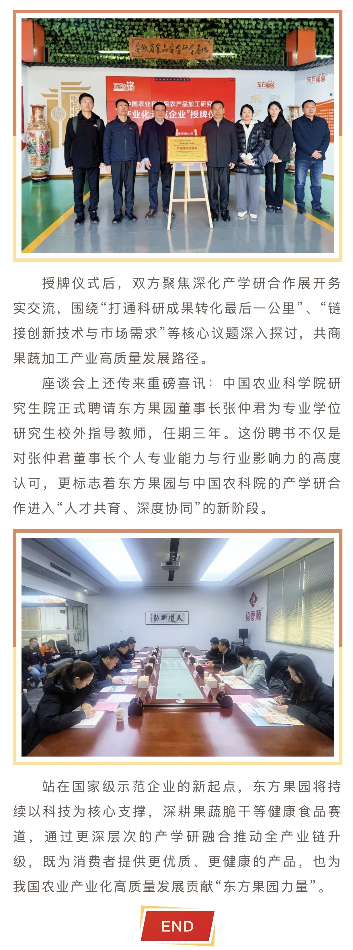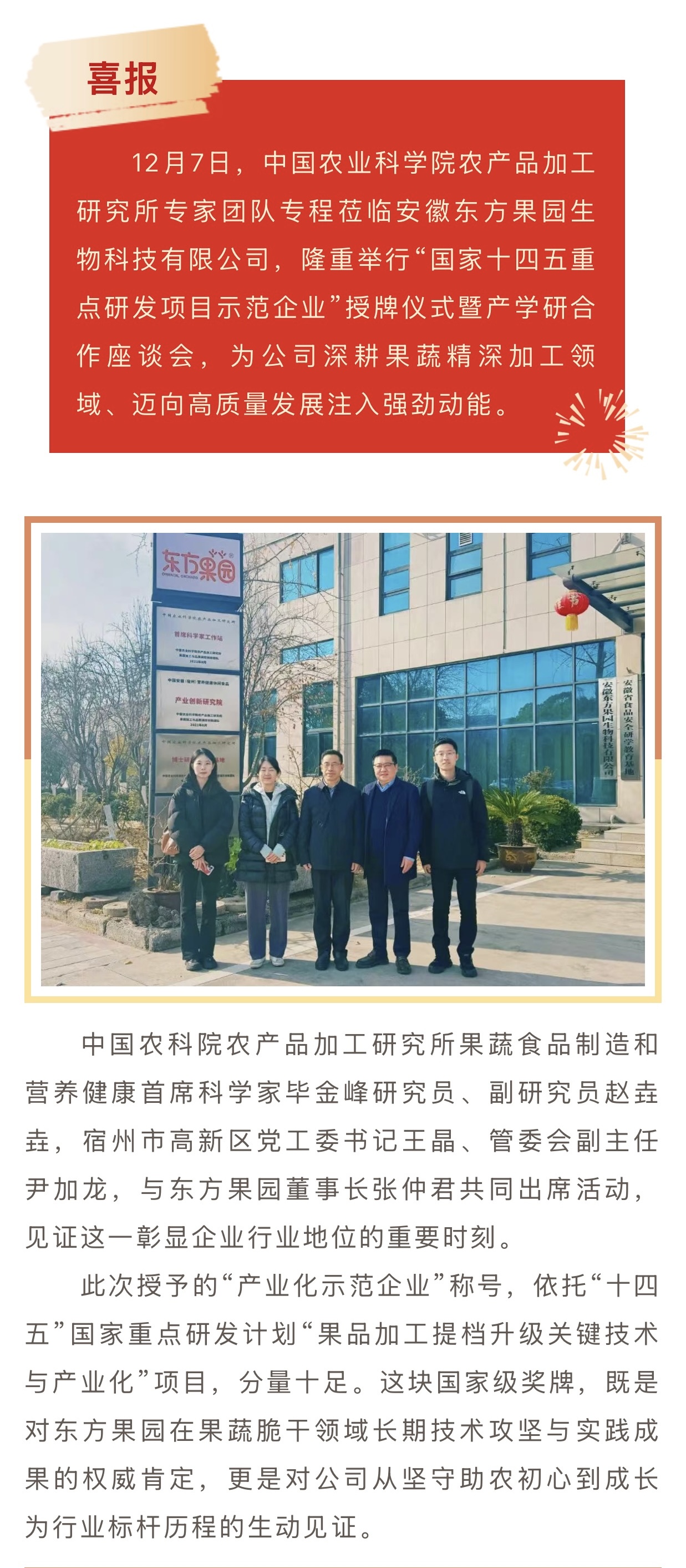 東方果園獲授“國(guó)家十四五重點(diǎn)研發(fā)項(xiàng)目示范企業(yè)”,產(chǎn)學(xué)研合作再啟新篇