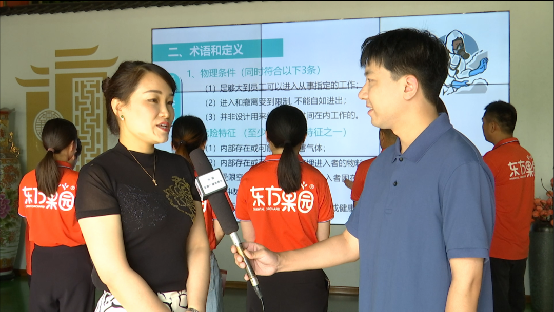 在面對安徽廣播電視臺的采訪時(shí),企業(yè)輪值總崔文艷表示:“我們安徽東方果園生物科技有限公司在2018年通過了三級安全生產(chǎn)標(biāo)準(zhǔn)化管理體系,全面落實(shí)抓基礎(chǔ)、抓基層、抓生產(chǎn)一線,強(qiáng)化班組規(guī)范化建設(shè),將月度安全績效、生產(chǎn)風(fēng)險(xiǎn)管控融為一體,形成東方果園特色的管理模式,做到“人人講安全、個個會應(yīng)急””。
