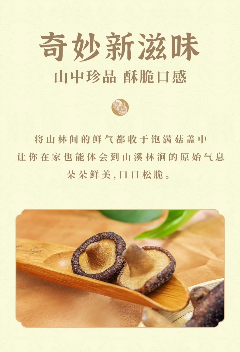 嚴(yán)格的選菇標(biāo)準(zhǔn)挑剔才有好香菇,選取整顆脆化